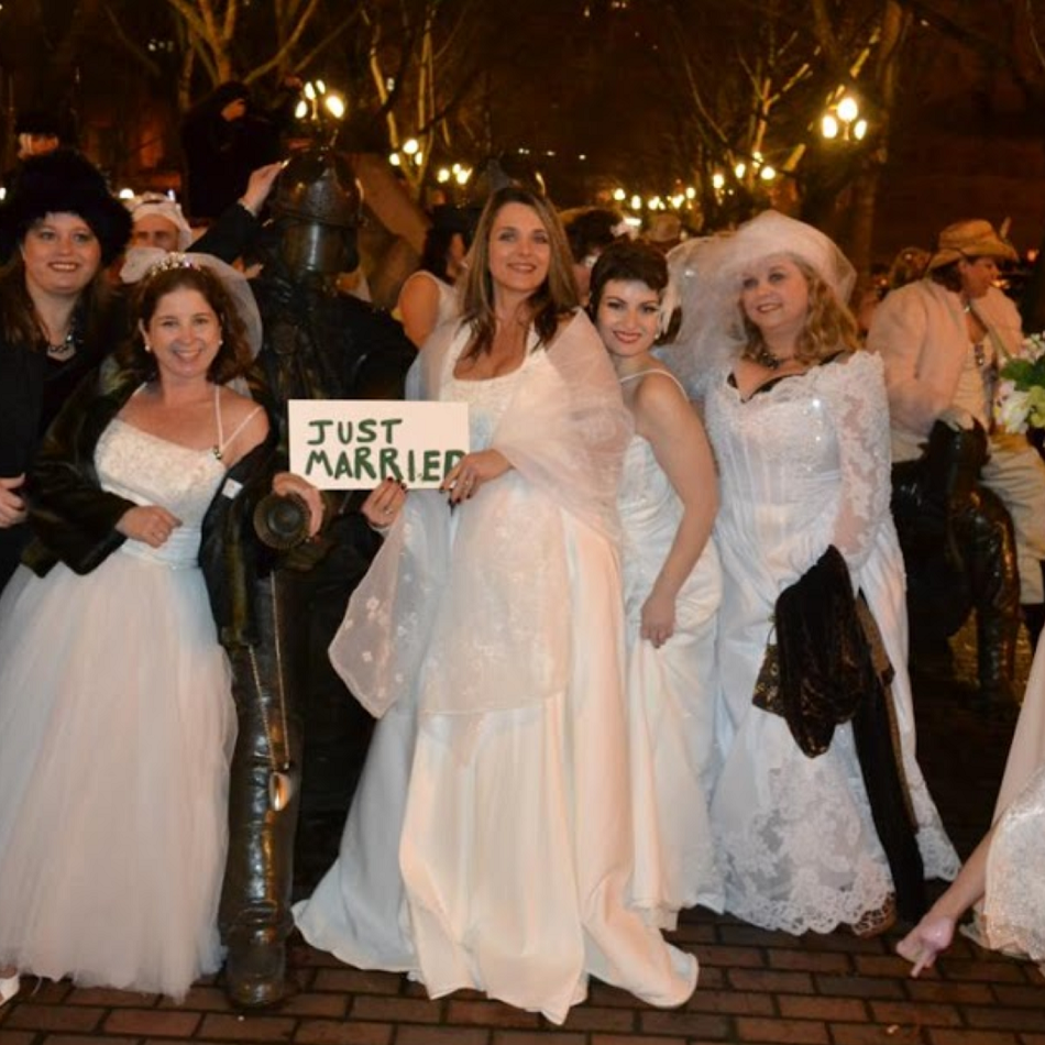 The Seattle Brides of March is an annual pub crawl and antics in a chosen neighborhood of night clubs.